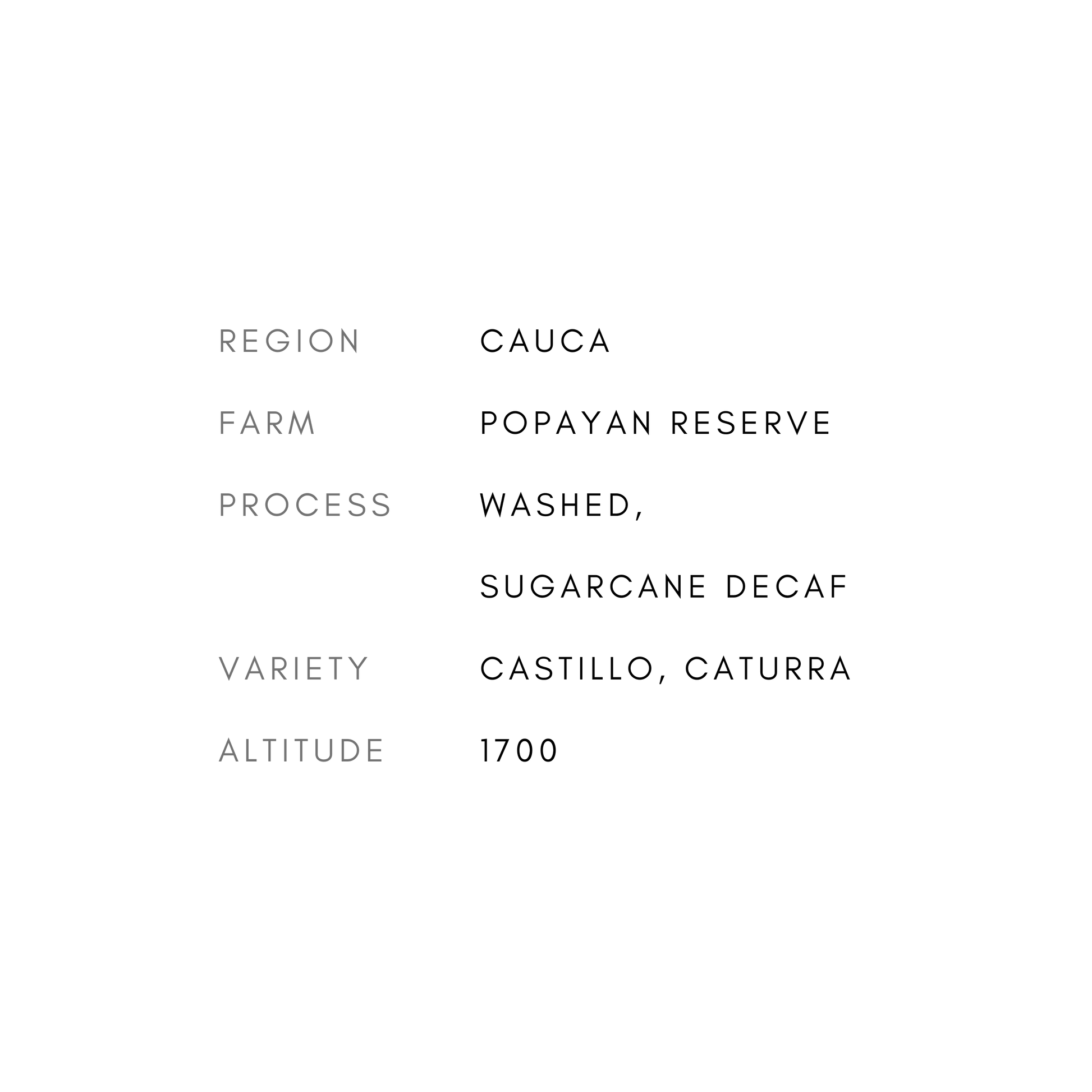 The Meseta de Popayan is sheltered by the Andes mountain range which helps generate homogeneous climatic and altitudinal characteristics - the topography is perfect to grow exceptional coffee! The result is a balanced cup profile with a full body. The farmers in this region focus on quality when harvesting, resulting in an excellently bright espresso.