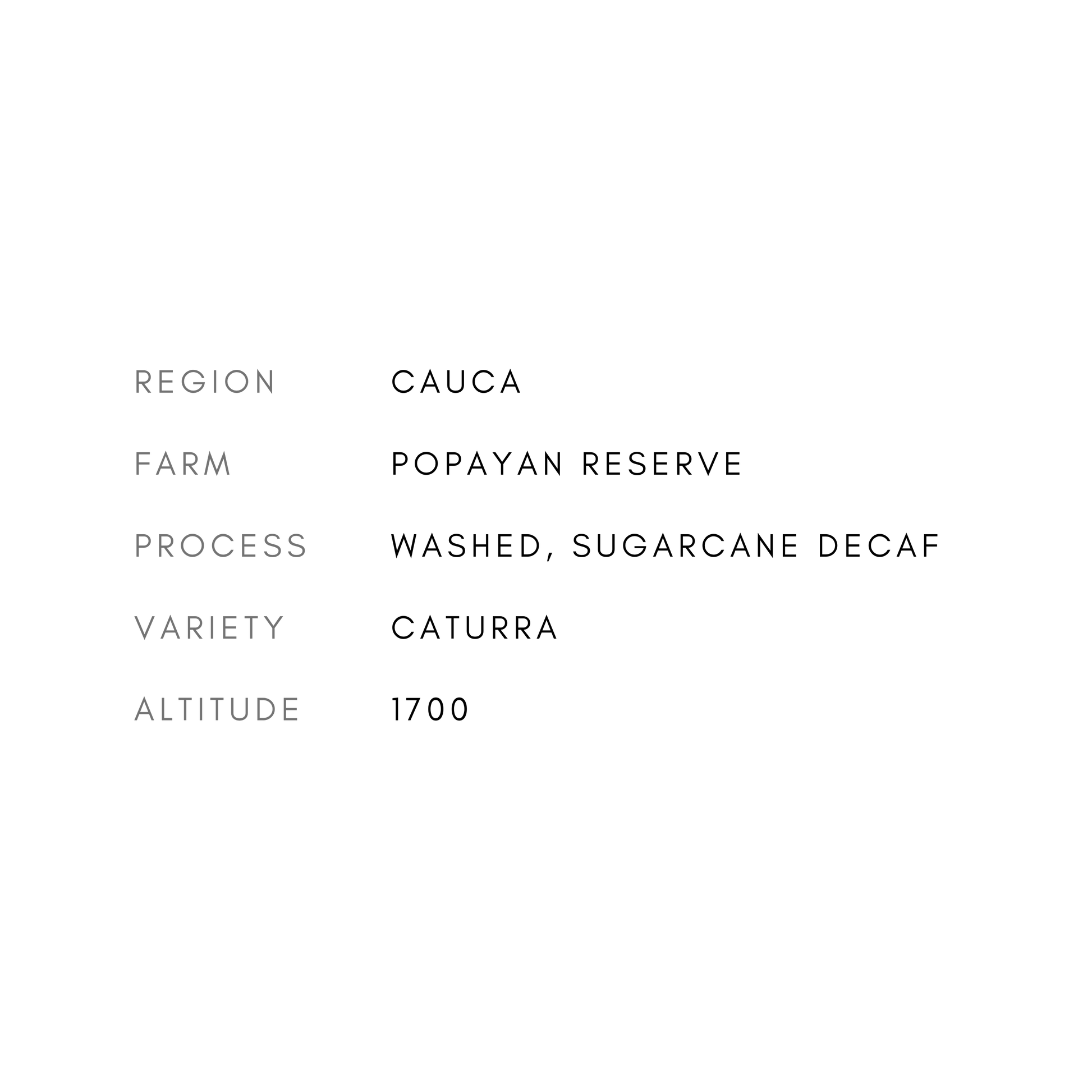 Blend: 50/50 blend of caffeinated and decaffeinated Colombia Popayan